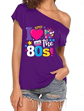 Ретро В стиле 1980-х Как у футболки На одно плечо Короткие рукава Маскарадный костюм Жен. Хэллоуин Карнавал Маскарад Вечеринка / ужин Парад гордости Месяц гордости Взрослые Футболка