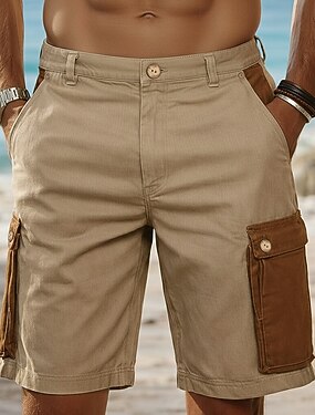Муж. Шорты-карго Шорты Льняные шорты Летние шорты Пэчворк Карман Контрастных цветов Один цвет Комфорт Дышащий Короткие Повседневные на открытом воздухе Пляж Мода Оригинальный рисунок Зеленый Хаки