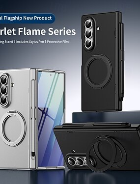 телефон Кейс для Назначение SSamsung Galaxy Z-образный сгиб 7 Z-сгиб 6 Z Fold 5 Z Fold 4 Z Fold 3 Откидная крышка со стендом и протектор экрана Полная защита тела Ретро ПК Металл