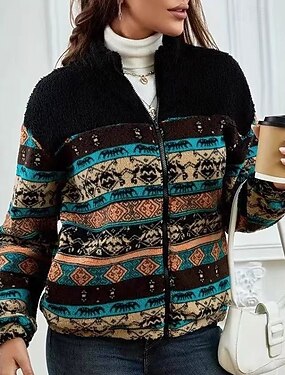 Жен. Двойное пушистое зимнее пальто Флисовая жилетка Толстые Теплый Застегнуться Длинный рукав Виды спорта Контрастных цветов Верхняя часть Для На открытом воздухе Путешествия Курорт Спортивная одежда