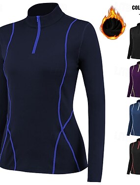Жен. Флисовая тренировочная рубашка Йога Вверх Воротник-стойка Теплый Четверть молнии Длинный рукав Виды спорта Сплошной цвет Верхняя часть Для Тренажерный зал Спортивная Спорт Спортивная одежда