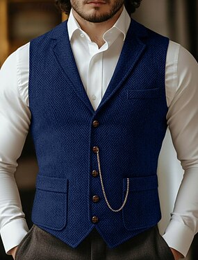 Муж. Жилет Официальные Свадьба Для вечеринок Винтаж Классический и неустаревающий Наступила зима Полиэстер Сплошной цвет Однобортный крой Блейзер Темно-серый Темно синий Коричневый