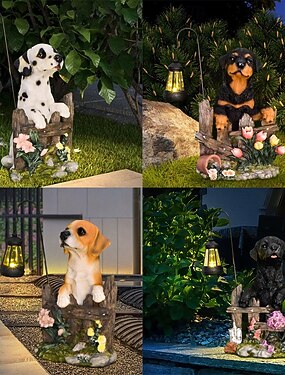 1 шт. Уличный водонепроницаемый светильник в виде фигурки собаки на солнечных батареях, украшение для сада, двора, газона и дорожек, садовый светильник из смолы в виде щенка на солнечных батареях,