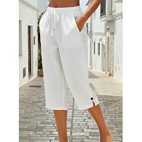 Жен. Брюки-капри Чино Уличный стиль Классический На каждый день До щиколотки Нормальная Полотняное плетение Кулиска Карман удобный Эластичная Повседневные на открытом воздухе Для улицы