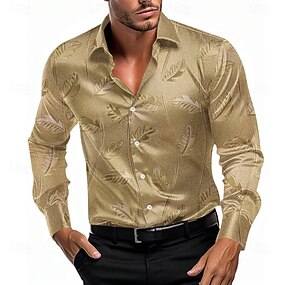 Муж. Рубашка Атласная рубашка Кнопка рубашка Цветочный принт Вечерние наряды Светло-синий Желтый Серый Длинный рукав Отложной Лето Весна Одежда Кнопка вверх