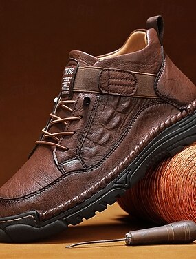 Мужские коричневые ботинки на шнуровке с удобной посадкой – стильная и практичная обувь, идеально подходящая для повседневной носки, прогулок на свежем воздухе и повседневных дел