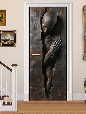 3D-фреска на дверь с изображением человеческой фигуры, художественная наклейка на дверь, оптическая иллюзия, настенная наклейка, съемная виниловая пленка для декора дома и офиса.