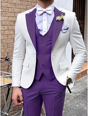 Мужской Костюмы для вечеринок Свадьба Для сцены Желтый Красный Весна, осень, зима, лето Костюм Лацкан с тупым углом Мода Пэчворк Приталенный крой Набор из 3 предметов Однобортный с 1 пуговицей