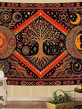 Древо жизни, солнце и луна, небесный настенный гобелен, мистические оккультные символы, оранжево-черный, бохо, настенное украшение, декор для дома, спальня, гостиная, фон для йоги.