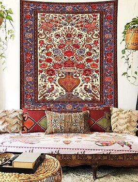 винтажная ваза с цветами в персидском стиле, настенный гобелен с красными розами и птицами, восточный ковер с узором, настенное украшение в стиле бохо-шик для дома, гостиной и спальни.