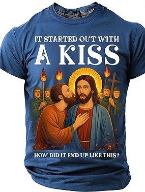 Мужская библейская футболка Это началось с поцелуя Иуда целующего Иисуса религиозная пародия графическая футболка как это закончилось так Забавный христианский мем повседневный подарок дизайнерское