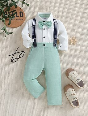 Мальчики 3D Сплошной цвет Рубашка и брюки Длинный рукав Другие принты Осень Зима Повседневные Классический Дети (1-4 лет) 1-5 лет V-образный вырез Вырез под горло Годовщина День рождения