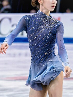Костюмы для фигурного катания для взрослых и детей, индивидуальные костюмы из синей сетки спандекс, градуированные, для выступлений, для соревнований, тренировок, женские юбки со стразами, костюмы для