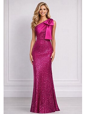 Футляр В пол Вечернее платье Вечернее платье Элегантный стиль Блестящая Без рукавов На одно плечо Выпускной Официальные Сатин Пайетки с Бант(ы)