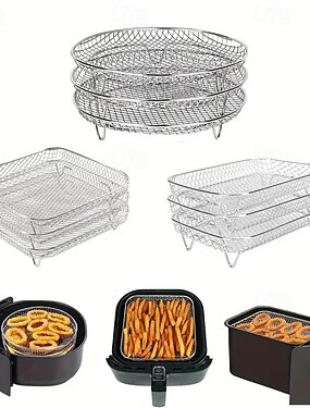 Набор принадлежностей для аэрофритюрницы из нержавеющей стали с тремя ярусами — поддоны, которые можно складывать друг на друга для духовки и аэрофритюрницы, можно мыть в посудомоечной машине,