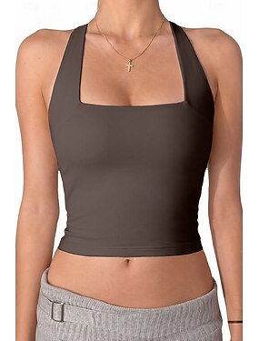 Жен. Для миниатюрных Спортивный танк Облегающий топ Обратный Крест Сплошной цвет Стиль горячий Без рукавов ремни Укороченные топы Для спортивного зала Спорт На выход