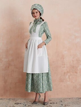 250-летие США 19-го века 1800-е годы Платье прерий Комплект из чепчика и фартука Длинные рукава Пионерка Колониальный Пионер Война за независимость Цветочный принт А-силуэт Маскарадный костюм Жен.