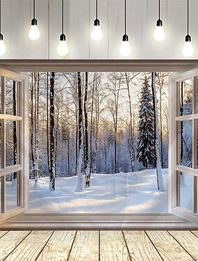 Рождественский настенный гобелен с изображением окна, праздничный фон для фотографий для зимнего украшения дома