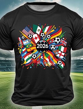 Международный футбольный кубок 2026 года, глобальный футбольный турнир, мужская футбольная форма тики-така, футбол, контроль мяча, пас мяча, тактика, графический принт, короткий рукав, день матча,