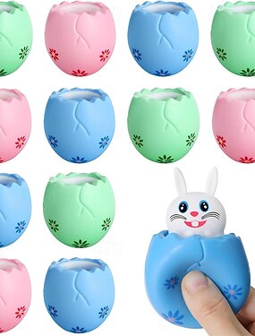 Наполнители для пасхальной корзины 12 упаковок пасхальных яиц сжимающий кролик - средства для снятия стресса - милые игрушки-кролики для фиджета аутизма тревожности СДВГ подарки на день рождения