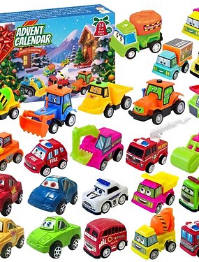 Адвент-календарь новогодние мелочи 2025 года для детей мальчиков 24 дня рождественского обратного отсчета с машинами на возврат праздничный набор машин для детей и малышей