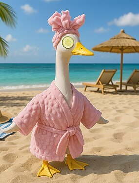 Набор из 3 предметов для спа-процедур для большой садовой гусицы: розовый халат и тюрбан, а также маска для глаз с огурцом. Милая одежда для гусицы, подходящая для украшения сада и пасхальной корзины.