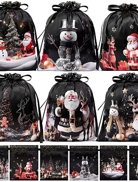 Набор из 4 подарочных пакетов для рождественских кукол, мини-сумочки в виде Санта-Клауса с узорами снеговиков и оленей, пакеты для хранения сувениров для праздничной вечеринки