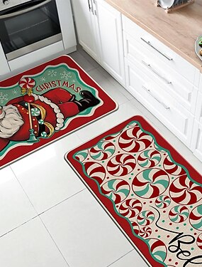 Рождественский мультяшный коврик 2-шт для коридора и кухни мягкий не скользящий машинная стирка коврик с изображением Санта-Клауса праздничное кухонное покрытие