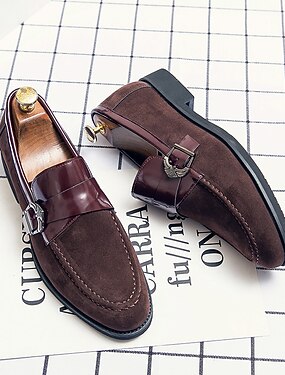 Мужские коричневые туфли-лоферы из искусственной кожи и замши без застежек – стильная повседневная обувь без застежек с пряжкой для повседневной носки, работы и неформальных мероприятий.