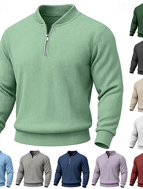 Муж. Толстовка Корд Толстовка с капюшоном и пуловером Натяни Толстовка с застежкой-молнией Абрикосовый Белый Красный Темно синий Темно-зеленый Воротник-стойка Полотняное плетение Текстура