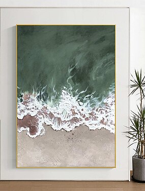 Большая 3D-картина с текстурой океана, акриловые краски, картина с зеленым пляжем в раме, абстрактное морское настенное искусство, прибрежная настенная живопись, картина на холсте с изображением пляжа, декор для дома.