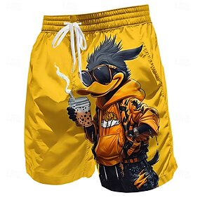 Муж. Смешной Утка мультфильм животных Обтягивающие длинные шорты Купальные костюмы, плавательные шорты Пляжные шорты Нормальная Гавайский Уличная одежда Пляж