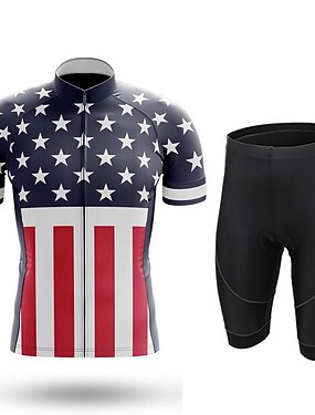 Муж. Велокофты и велошорты С короткими рукавами Горные велосипеды Шоссейные велосипеды Лето Красный В полоску Американский / США Звезды Смешной Велоспорт 3D