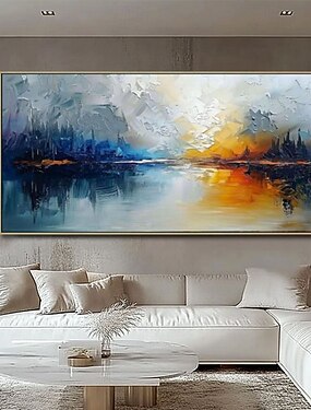 Картина маслом ручной работы на холсте, настенное искусство, украшение, современный абстрактный пейзаж, горы, озеро, отражения, для гостиной, домашнего декора, натянутая рама, подвесная