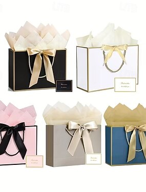 Набор из 1/3/6 больших портативных подарочных пакетов с бантами, доступных в четырех цветах, включает в себя оберточную бумагу и поздравительную открытку. Подходит для подарков подружкам невесты, на