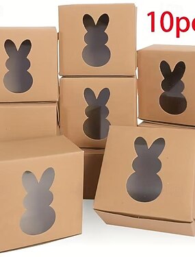 Пасхальная подарочная коробка, коробка из крафт-бумаги с окошком в форме кролика, коробка для подарков на вечеринку, свадебная подарочная коробка, пасхальное украшение.