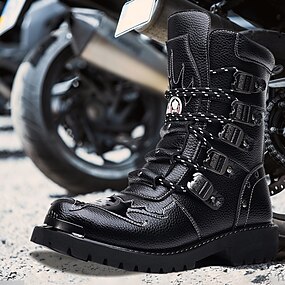 мужские черные мотоциклетные ботинки из искусственной кожи с пряжками - прочная и долговечная байкерская обувь для езды на велосипеде и приключений на свежем воздухе
