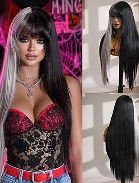 Парики из искусственных волос Прямой Естественный прямой Средняя часть Аккуратная челка Парик 30 дюймы Черный и золотой Искусственные волосы 30 дюймовый Жен. Мягкость Классический удобный Разноцветный
