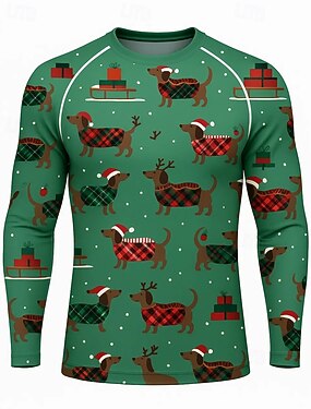 Новогодняя тематика Муж. Футболка для бега Спортивная рубашка Фитнес-рубашка 3D печать Длинный рукав Верхняя часть Для улицы Повседневные Осень Графика Впитывает пот и влагу Дышащий Спортивная
