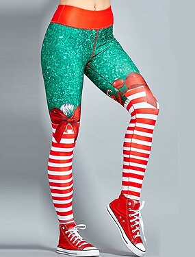 Жен. Штаны для йоги Подтяжка Утягивание живота Завышенная Тренировка в тренажерном зале Бег Фитнес Велоспорт Колготки Леггинсы Нижняя часть Рождество Белый + красный Красный / Зеленый Светло-зеленый