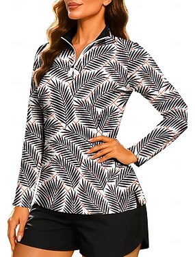 Жен. Универсальные Геометрический принт Гусиная лапка Топы Спортивная рубашка Теннисная рубашка Теннисный топ Длинный рукав Молния Цветочный UPF50