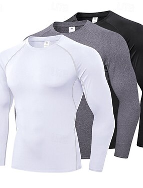 Муж. Компрессионная футболка Базовый слой для тренировок Тренировочные топы Длинный рукав Верхняя часть Одежда для спорта и отдыха Осень Однотонный Быстровысыхающий