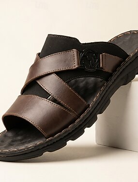Мужские коричневые сандалии-шлепанцы с открытым носком и перекрестными ремешками, повседневные удобные летние туфли для пляжного отдыха, курортной одежды, путешествий, домашнего использования, отдыха на природе и повседневного расслабленного стиля.
