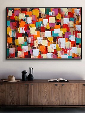 ручная роспись маслом холст настенное искусство украшение современный абстрактный цветной блок для домашнего декора свернутая бескаркасная нерастянутая картина
