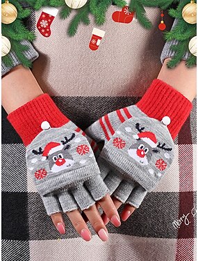 перчатки без пальцев с изображением оленей и варежками – теплые вязаные зимние праздничные перчатки для женщин и девочек