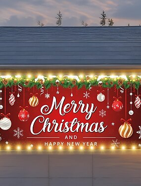 Рождественское покрытие для гаражных ворот, большие рождественские украшения для гаражных ворот 2025 года, уличный световой баннер, веселая настенная роспись для гаража (украшения), пожалуйста, приобретите световую гирлянду самостоятельно
