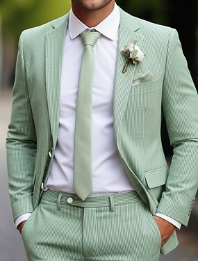 Муж. Пиджак Закрытие воротника Мода Легкие На каждый день Полоски Blazer Блейзер из сирсакера Розовый Небесно-голубой Полупрозрачный зеленый Узкий крой Однобортный с двумя пуговицами
