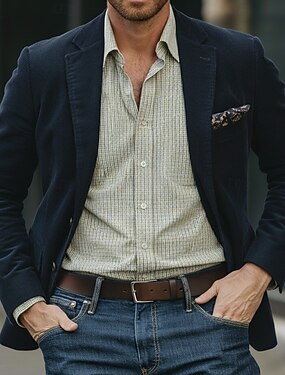 Муж. Пиджак Шалевый Для вечеринки Цветочный принт Blazer Синий Узкий крой Однобортный с 1 пуговицей