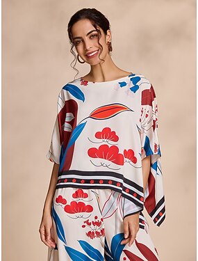 Жен. Цветочный принт Повседневные На каждый день Мадьярский рукав Абрикосовый Неровная кромка Крупногабаритные Рисунок Рукав 3/4 Элегантный стиль Повседневные Вырез лодочкой