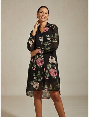 Женское мини-платье с V-образным вырезом, воротником-стойкой, шифоновое черное с цветочным принтом, элегантное, повседневное, для отдыха, весна-осень